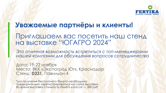 Приглашаем Вас посетить наш стенд на выставке "ЮГАГРО - 2024"!
